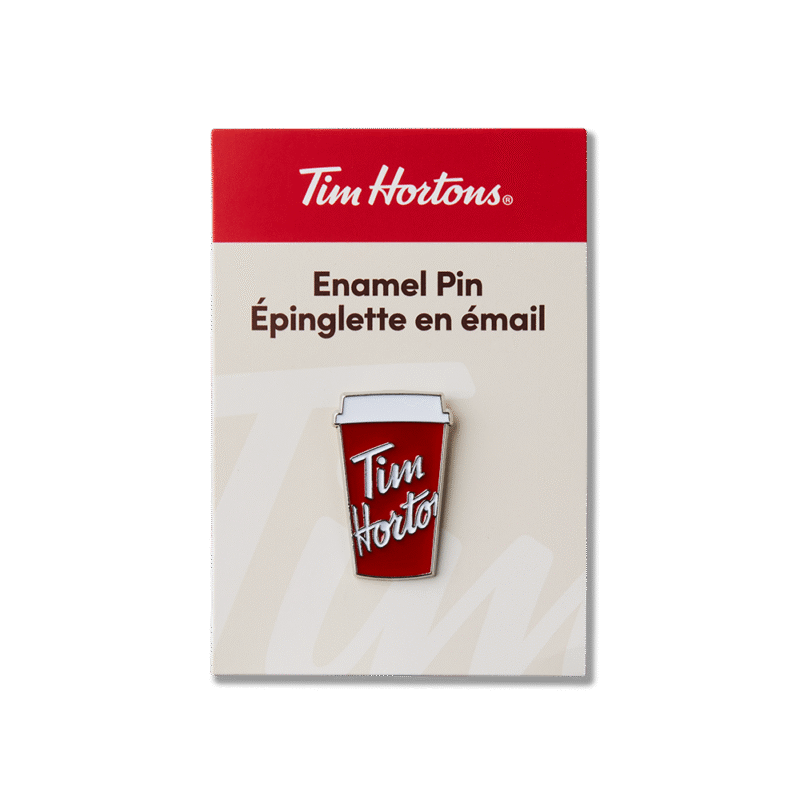 Show off your love for Tims with the Timbits® Box Enamel Pin. Add it to a jacket. backpack. or uniform to customize your look. Available in multiple styles including Red Hot Cup and Retro Logo.