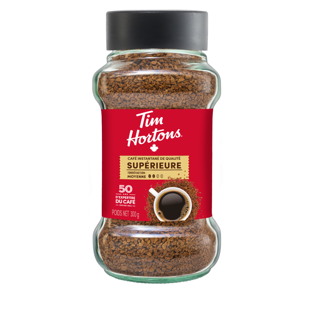 Premium: Tim Hortons Premium Instant Coffee is made with 100% Arabica beans and delivers a smooth and balanced taste.